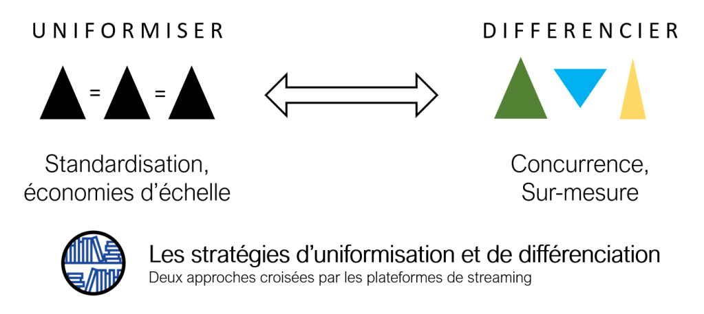 C’est là tout le paradoxe soulevé par François Lévêque dans Les Habits neufs de la concurrence : les entreprises recherchent aujourd’hui la standardisation pour réaliser des économies d’échelle mais ont en même temps l’obligation de différencier leurs produits afin de faire face à une concurrence féroce. C’est bien la signification à donner à la guerre déclarée entre les différentes plateformes de streaming, qui s’efforcent de se différencier par un catalogue toujours plus fourni et des playlists toujours plus personnalisées afin de gagner ces précieux abonnés supplémentaires, promesse de rentabilité.