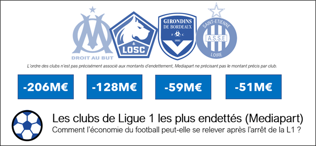 L’arrêt définitif de toutes les compétitions nationales en France sonne également le glas pour les droits TV sur la saison 2019-2020. Pour tenter de limiter les pertes économiques, la Ligue de Football Professionnel (LFP) a souscrit un prêt garanti par l’Etat (PGE) à hauteur de 224,5 millions d’euros. Seul hic, cette solution est bonne sur le court terme mais le prêt finira par être remboursé par la totalité des clubs de Ligue 1. Une solution en surface qui ne doit pas cacher le fond du problème : l’endettement des clubs français. Médiapart a dévoilé, dans son enquête sur les problèmes de financement du football français, une simulation financière réalisée par la LFP sur les comptes des clubs de l’élite au 30 juin 2020. Le déficit pour l’ensemble des clubs de Ligue 1 devrait atteindre 541 millions d’euros. Parmi les clubs les plus touchés, Médiapart avance 4 noms : l’Olympique de Marseille, les Girondins de Bordeaux, le LOSC et l’AS Saint-Etienne. Selon le site d’informations, ces 4 clubs afficheraient un déficit supérieur à 50 millions d’euros, même après injection du PGE. Ce creusement de l’endettement peut, bien sûr, être résorbé par un investissement extérieure venant des actionnaires des clubs. En revanche, il est moins sûr qu’en temps de crise majeure, les actionnaires soient capables d’injecter des dizaines de millions d’euros, sans l’assurance d’un retour sur investissement.