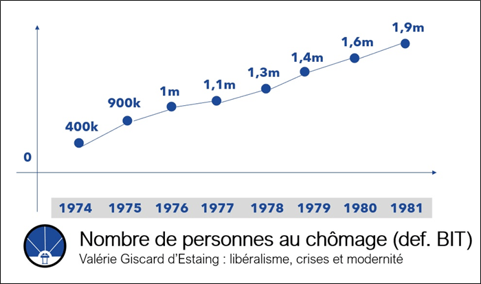 Cette politique rigoureuse a en effet ses vertus dans le contrôle de l’inflation, néanmoins elle n’a pas pour effet d’endiguer la dépression, ni la hausse du chômage. En 1975, la France connaît une récession de 1% et le nombre de chômeurs atteint les 1 millions pour la première fois. Rappelons qu’en 1967, Georges Pompidou consacrait la formule devenue célèbre : « le jour où la France comptera 1,5 million de chômeurs, ce sera la révolution ». L’arrêt des 30 glorieuses et de la croissance de rattrapage va pourtant faire de cet enfer supposé une rapide réalité. Les années 1970 caractérisent en effet la fin du mode de régulation et de répartition fordiste au profit du nouveau mode de régulation actionnarial, avec l’apparition d’un chômage de masse. Alors que l’inflation persiste et que le chômage s’accentue, la France connaît une situation de « stagflation (chômage et inflation) » à l’image de ses confrères européens. Le premier ministre Jacques Chirac se positionne alors en faveur d’un plan de relance. En 1975, le président accède finalement à sa demande avec un plan de soutien de 30 milliards de francs (15 milliards en investissements publics, 10 milliards en mesures fiscales et 5 milliards de crédits accordés aux familles nombreuses comme aux personnes âgées). En 1976, Chirac finit tout de même par claquer la porte en désaccord sur l’élection du Parlement européen au suffrage universel.
