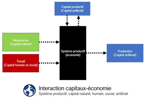 En conséquence, imaginer compenser la perte de capital naturel par l’augmentation de capital artificiel semble peu réaliste à long terme, car la perte de capital naturel entraine une formation fortement amoindrie de capital artificiel.