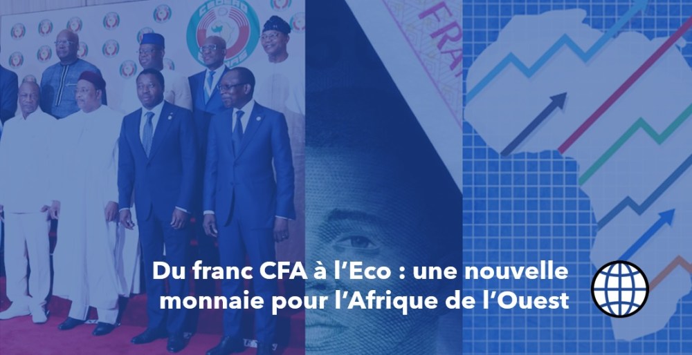 Créé le 26 décembre 1945, des années avant l’indépendance des Etats Ouest africains, le franc « CFA » pour « Colonies Françaises d’Afrique » fait débat. Il s’agit encore aujourd’hui de la monnaie officielle des 8 Etats membres de l’Union Economique et Monétaire Ouest Africaine (UEMOA) – Bénin, Burkina Faso, Côte d’Ivoire, Guinée-Bissau, Mali, Niger, Sénégal, Togo. Vivement critiquée, elle donne un sentiment d’appartenance continue à la France. Les Etats Ouest Africains ont donc pour projet la création d’une nouvelle monnaie, l’ « Eco », pour remplacer le franc CFA. Ce projet prévoit également d’intégrer les pays de la Cédéao (Communauté des États de l’Afrique de l’Ouest), constitués des 8 Etats de l’UEMOA et des 6 Etats de la Zone Monétaire d’Afrique de l’Ouest (ZMAO – Gambie, Ghana, Guinée, Libéria, Nigéria et Sierra Leone).